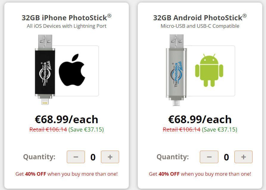 Vous pouvez dans tous les cas en passant par le lien de l’article profiter d’une superbe réduction sur The Photo Stick mobile. Sur le site officiel du fabricant, vous aurez alors le choix entre le modèle pour Android et celui pour iOS (faites bien attention à acheter celui qu’il vous faut).